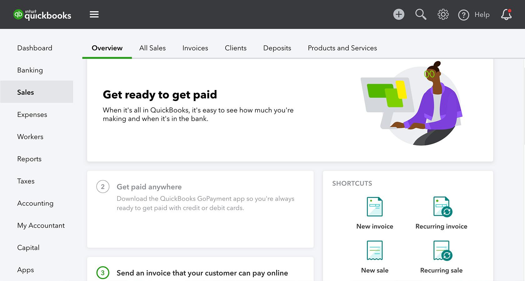 クライアントとともに働くことに加えて、UXコンサルタントはミーティングやクライアントとのやり取り、請求書の送付といった組織に必要なタスクをうまく処理しなければなりません。(上図:UXデザインコンサルタントの、Quickbooks上の請求書)