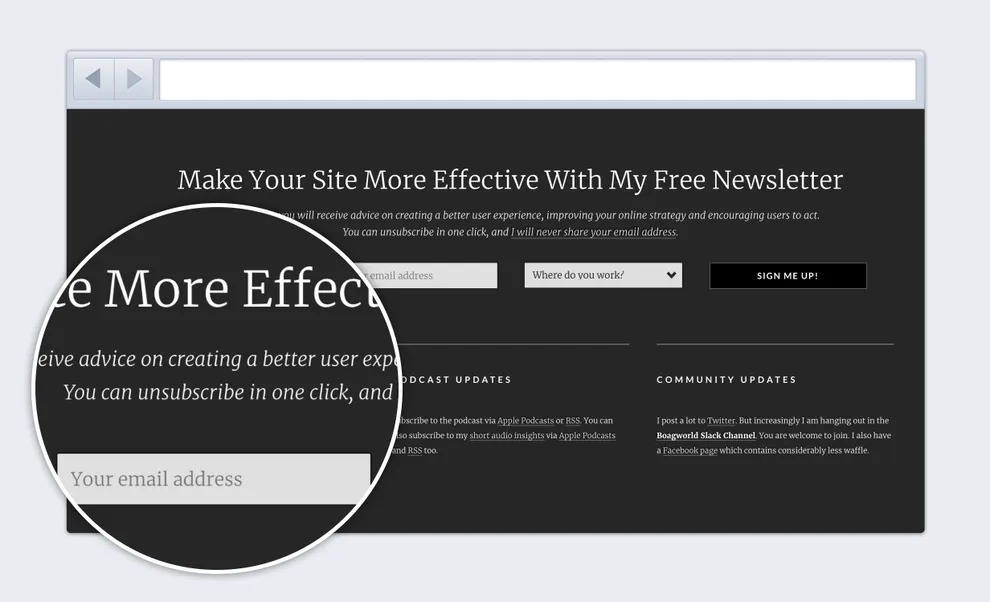 ユーザーの信頼を得るためには、彼らに準備が整う前に決定させるために切迫感を与えているわけではないことを明確にします。そこで、私は決まって次の3つのアプローチを同時に取ります。