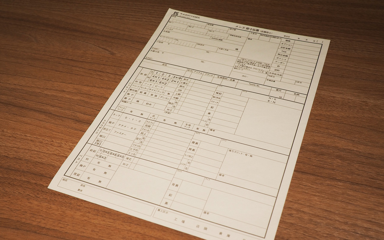 最終的に決まったものをあとから採寸伝票に記入していっているようで、場合によっては接客中の1時間内で収まらず、あとで残業してやっている方もいたということで、この辺りはうまく効率化できるはずだと思いました。