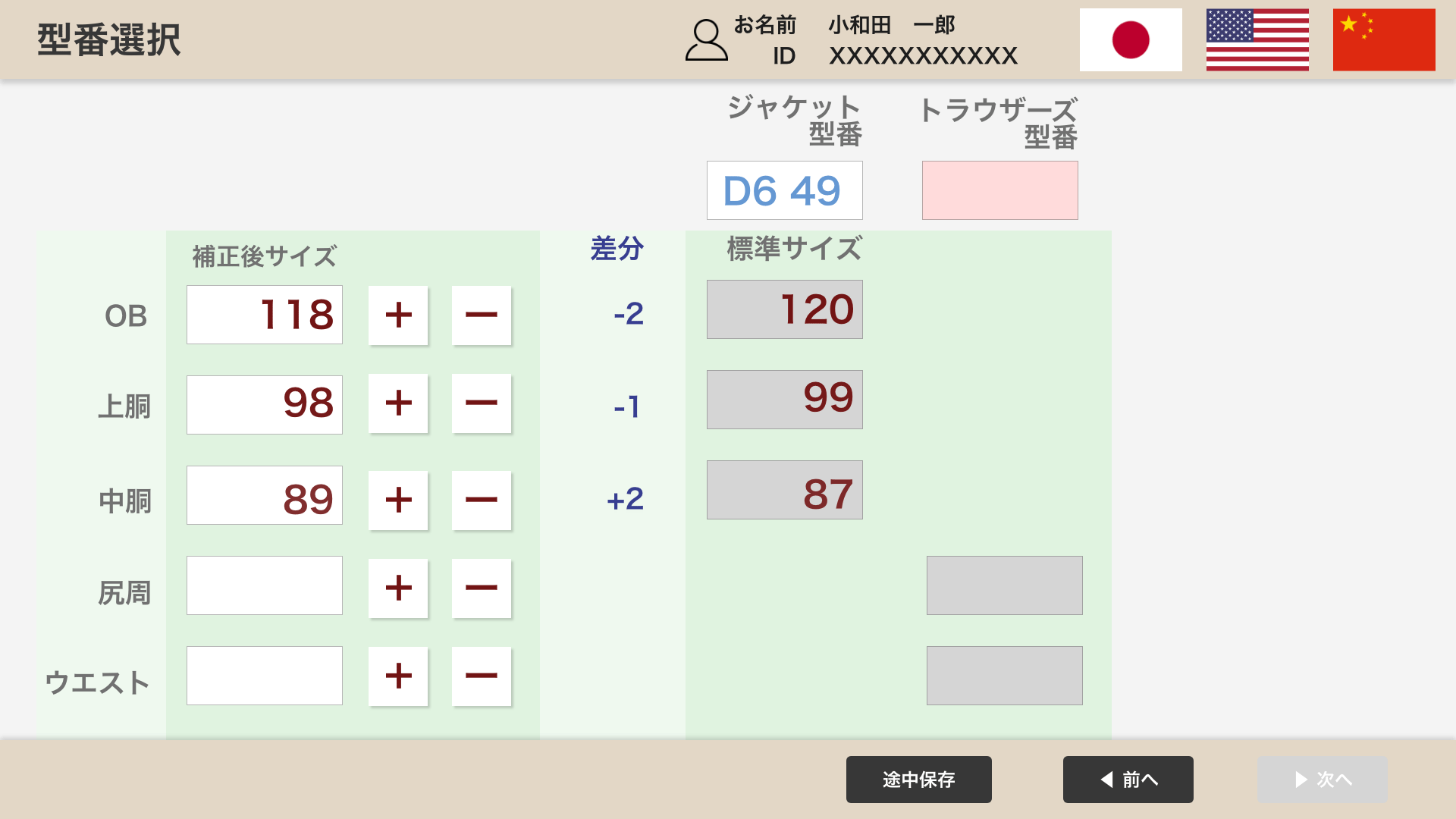 土屋:はい。つまり、インプットとしては「①基本サイズを決めるためにヌード寸法を取る」、「②サイズが決まってからそのサイズのスーツを微調整する」という2ステップなんですね。