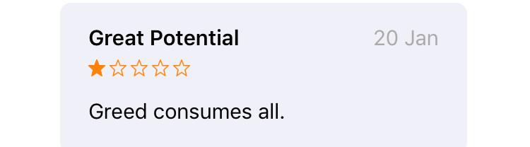 別の App Store のレビュアーは、最近リリースされたこれと似たゲームを、一言で次のように評しています。