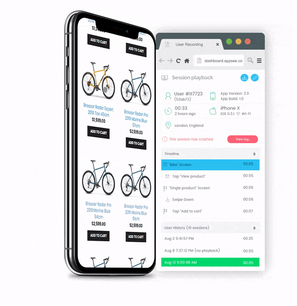 ユーザーがどの広告をタップしたのか、広告が何回表示されたかについては簡単にデータを得ることができますが、その数字だけでは実際の広告についてのユーザー体験はまったくわからないでしょう。モバイル広告のUXを理解するためには、セッションの記録が必要なのです。ユーザーのセッションの記録を使うことによって、個別のユーザーのセッションを動画でリプレイし、1つ1つの操作を実況しながら分析することで、あなたのユーザーがみてインタラクションしたのと同じように、アプリをみることができます。このようにわかりやすいリアルタイムの可視化を行うことで、365Scoresのようなアプリ提供者が悪質な広告を積極的にみつけだすためのモニタリング可能になります。
