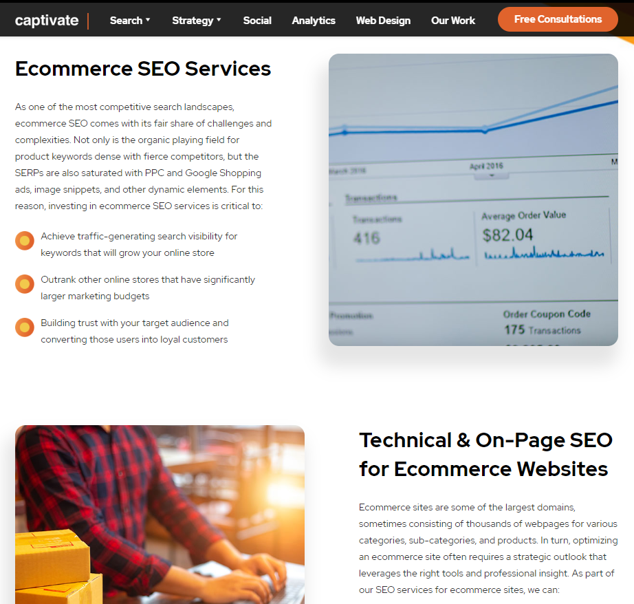 SEOエージェンシーにとっては、どうやら「ecommerce SEO services」が第一のキーワードになりそうです。しかし、「ecommerce SEO company」「SEO for ecommerce」といったバリエーションのために別のページをつくるのではなく(10〜15年前であればそうしたでしょうが)、これらのキーワードを同じページに組み込もうとするでしょう。
