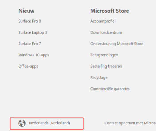 Microsoftによる配置の失敗例をみてみましょう。オランダ語から英語に言語を変更する際、ユーザーはまず言語セレクターをヘッダーから探します。しかしMicrosoftはサイト下部のフッターに配置しています。さらに言語のリストではなく、リージョン毎のサイトを並べた大きなウィンドウが開く仕様となっているのです。