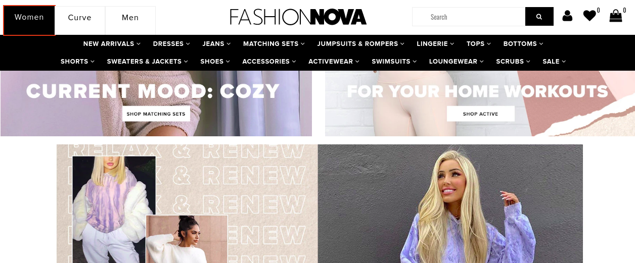 下の例では、トップの水平メニューに選択肢が多すぎます。もっと言うと、なぜ「Curve(グラマラスな体型)」が別カテゴリなのかがわかりません。