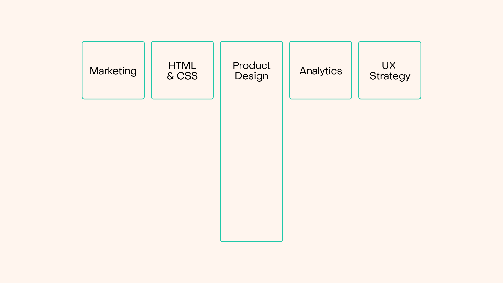 一見無関係に見える複数のフィールドにおける気づきを組み合わせることで、最高のアイデアが生まれるのです。T型のデザイナーなら、そういった繋がりを作り出して、イノベーティブな作品を生み出すためのプロジェクトをリードすることができます。