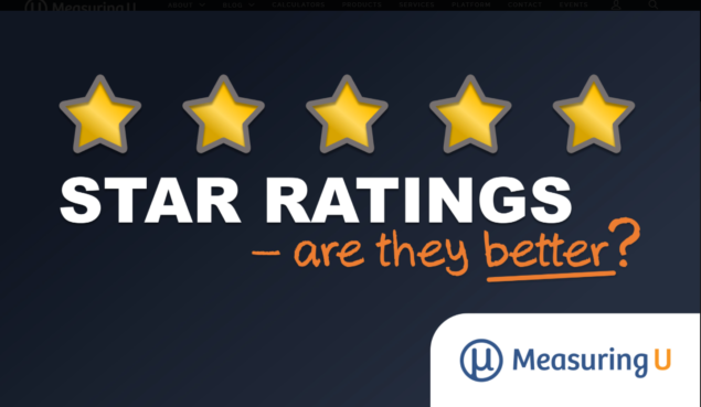 本稿では、近年どのサイトでもよく見かける「5つ星評価」を、評価尺度としての適切さの観点から分析したMeasuringU社のブログ記事”ARE STAR RATINGS BETTER THAN NUMBERED SCALES?”をご紹介します。