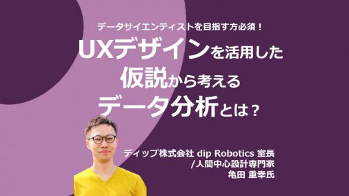 2020年2月10日(月)のオンラインセミナーでは、営業支援AIシステムの開発や日本初のAIニュースメディア「AINOW」の立ち上げ〜グロース、AIに特化したアクセラレータープログラム「AI.accelerator」にて技術担当のメンターを務めるなど、AI領域で活躍される傍ら、UXデザインの専門家でもある ディップ株式会社 亀田さんにご登壇いただき、データ/AI領域においてもUXの考え方が重要であるということを、ご自身が経験した失敗談も交えてお話しいただきました。