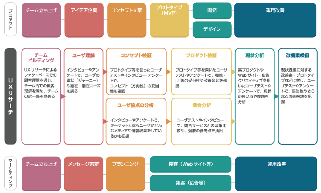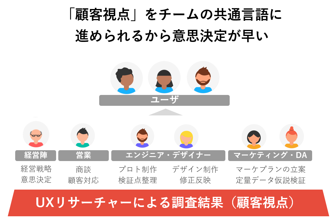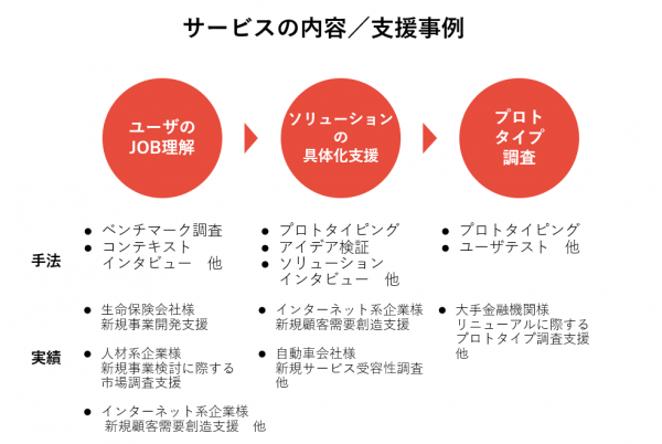 UXリサーチの内製化を支援するUXリサーチャーオンデマンド(UXRO)を行っているので、社内にノウハウが残る形で支援します。最終的な調査レポートを出して終わりではなく、そこに至るプロセスについてもこちらから説明し、中間成果物の内容についても一緒に議論し、可能であれば調査にもご参加いただき、成果を一緒に作り上げていきます