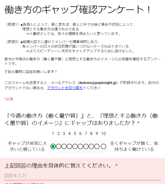 そこで、2018年から取り入れたのが、「働き方のギャップ確認アンケート」