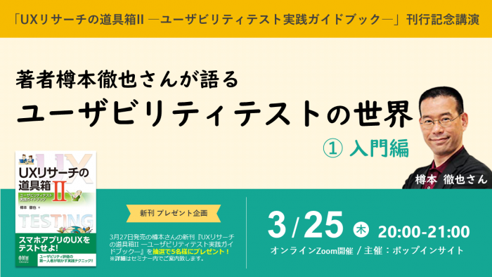 昨年6月POPウェビナーに初登壇されたUXリサーチャー樽本徹也さん。樽本さんのUXリサーチ・シリーズ第2弾となる新刊『UXリサーチの道具箱II ―ユーザビリティテスト実践ガイドブック―』が3月27日に出版されます。